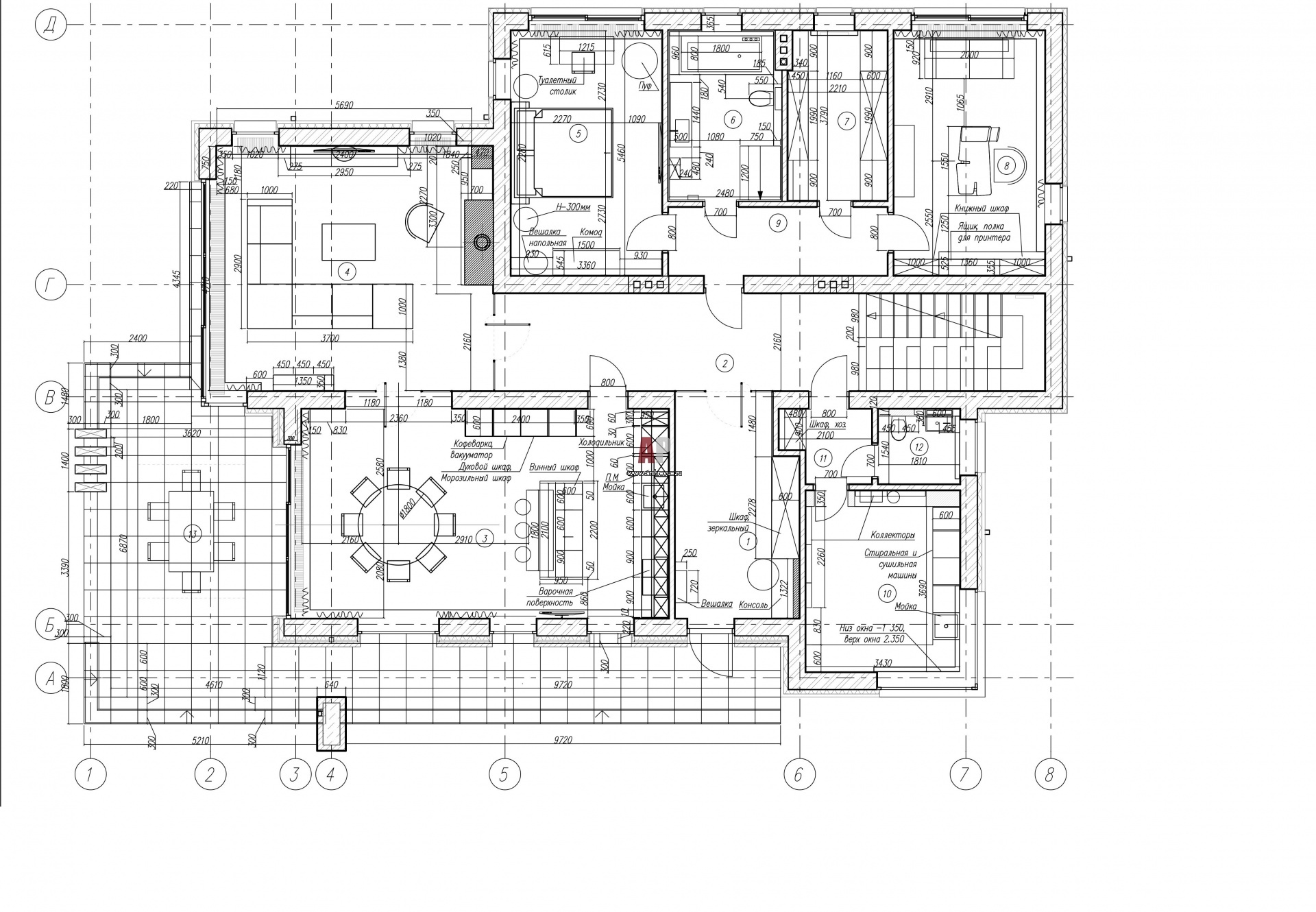 План первого этажа двухэтажного дома в Репино. Общая площадь – 430 кв. м.