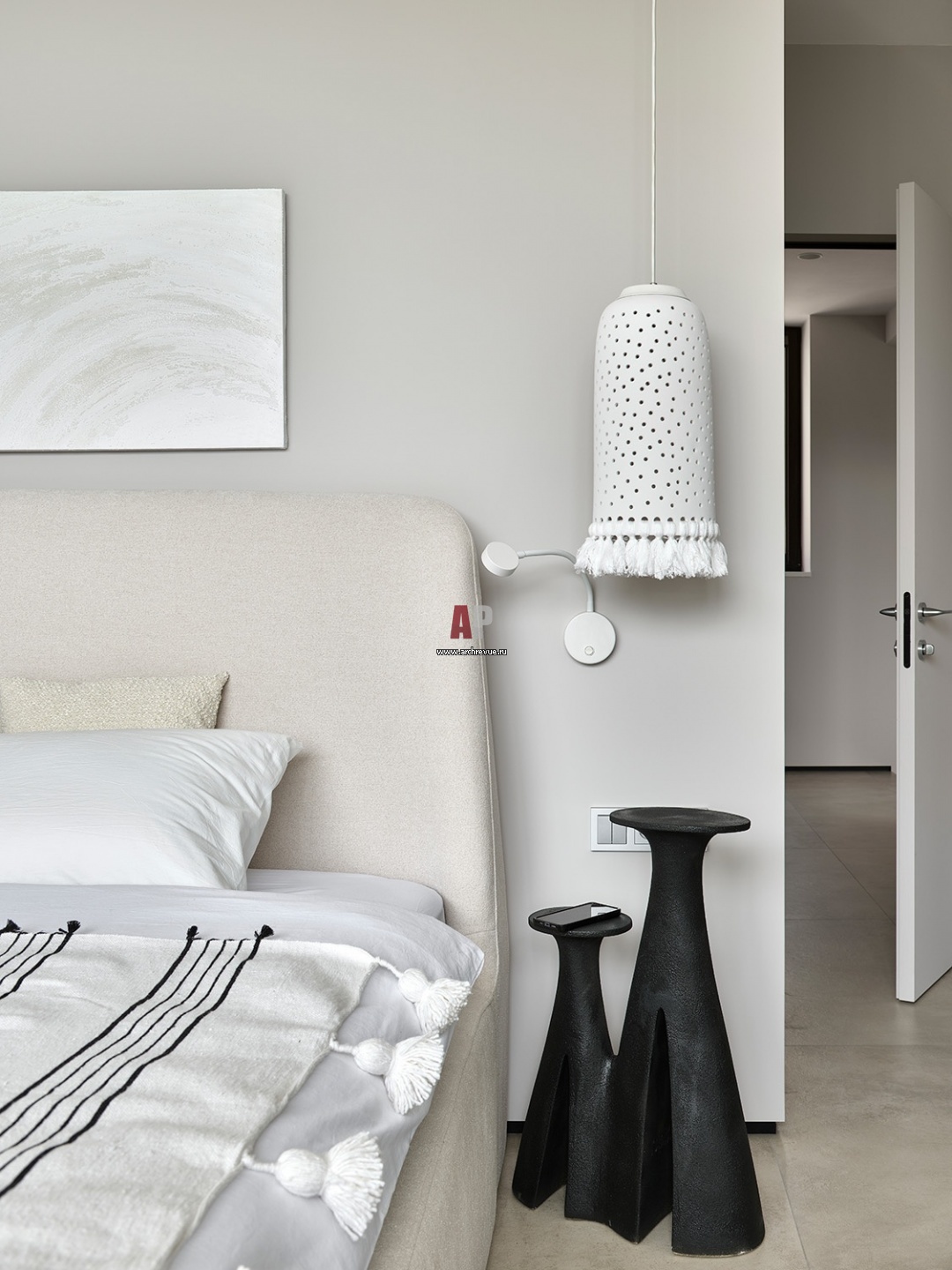 Спальня. Прикроватные столики, Ceramum. Подвесные светильники, Svoy design.