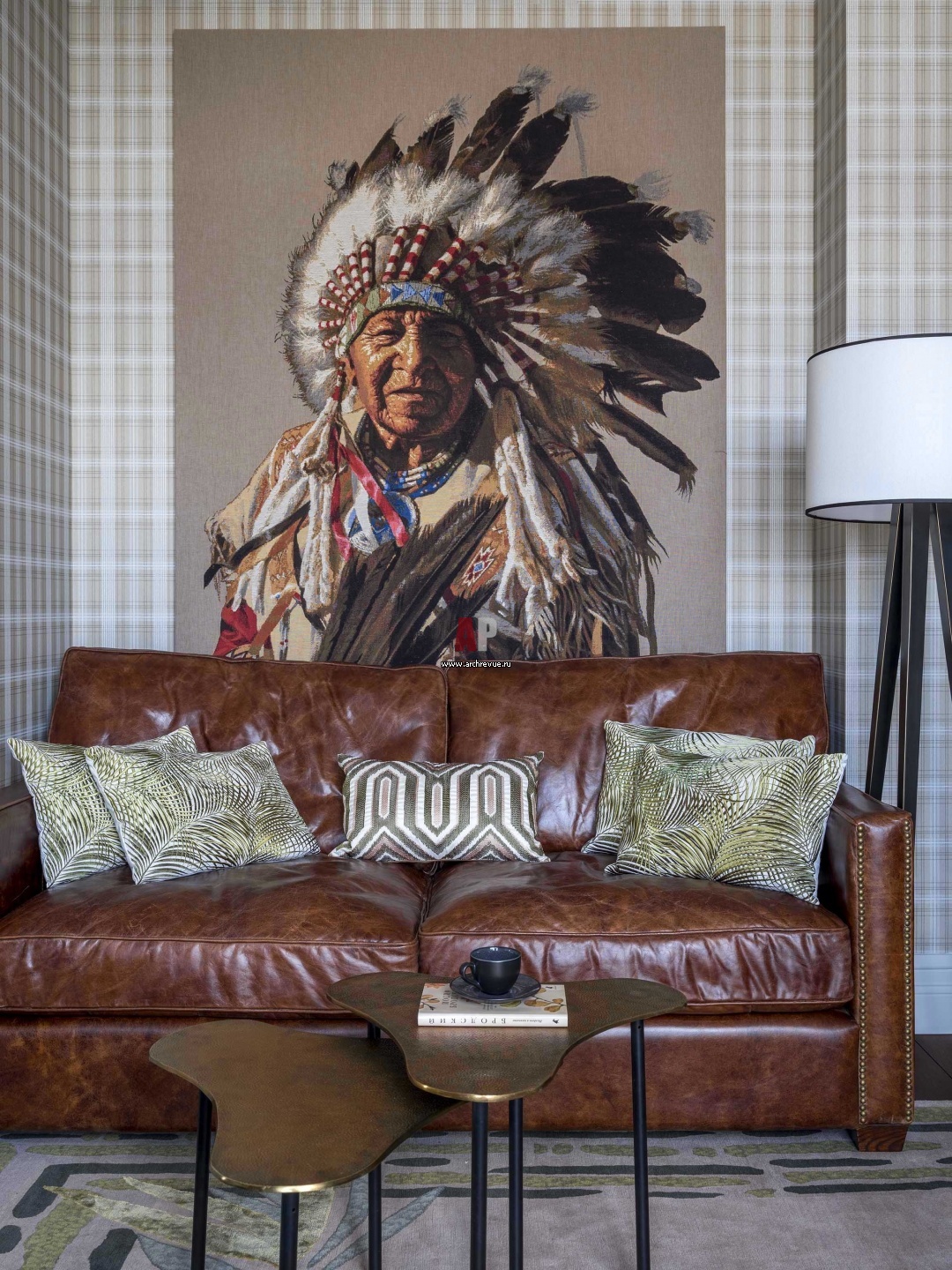 Интерьер кабинета. Над кожаным диваном – гобелен с портретом индейца.