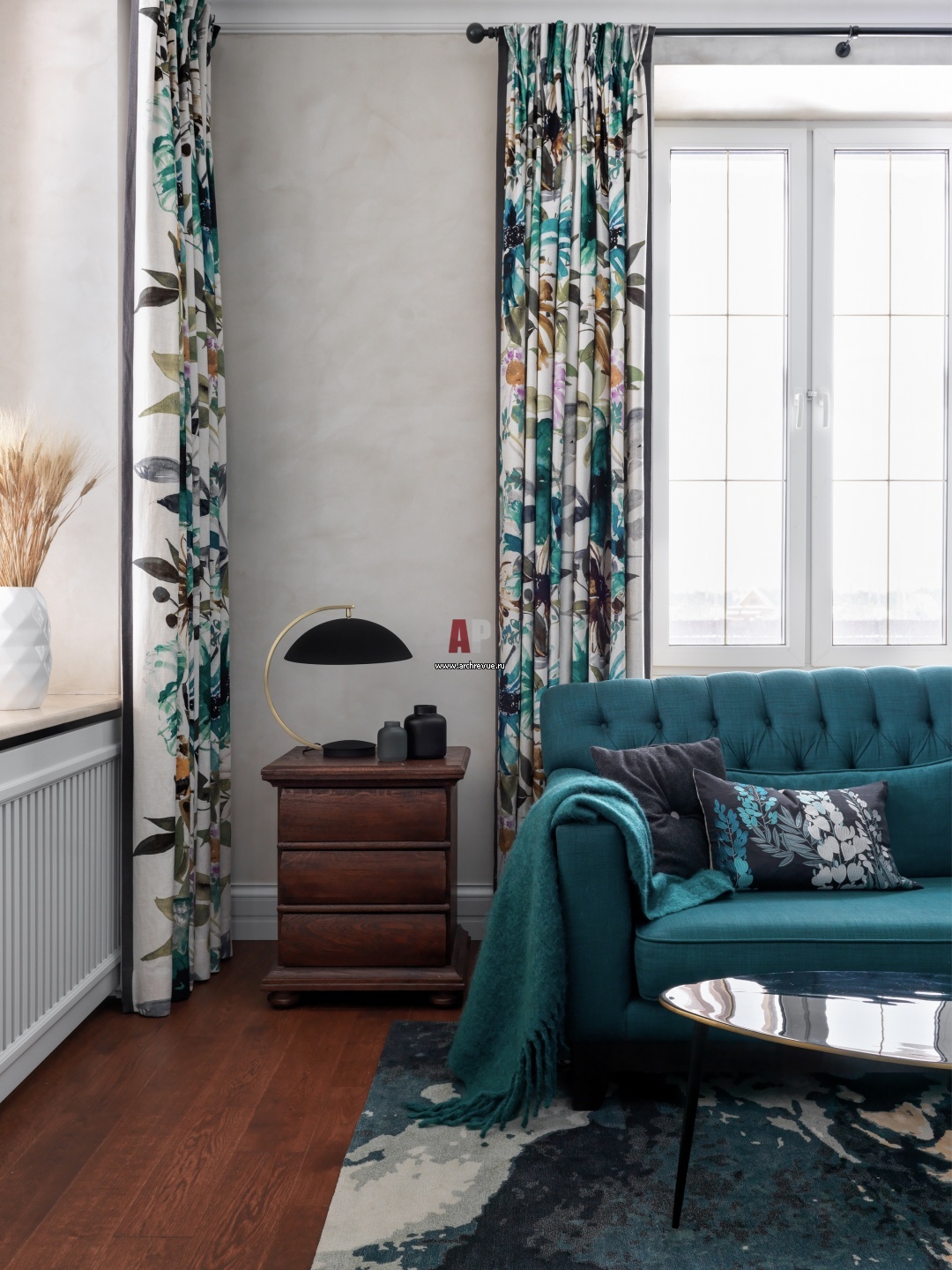 При оформлении дома нужно было использовать очень большую часть уже существующей мебели, которая осталась после переезда, а также светильники и декор. Всю мягкую мебель перетянули, использовали обивочные ткани Sahco.