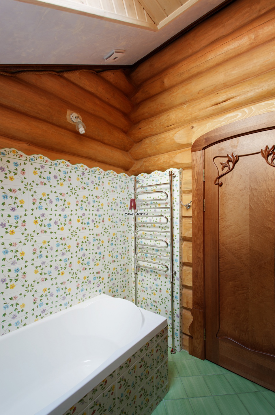 Санузел в стиле кантри. Плитка с мелким рисунком «в цветочек», поставщик «Ветрико».
