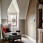 Зона отдыха в мансарде. Панели, обитые тканью, книжный шкаф – все по эскизам дизайнеров. Кресло, Bernhardt. Столик, Caracole.