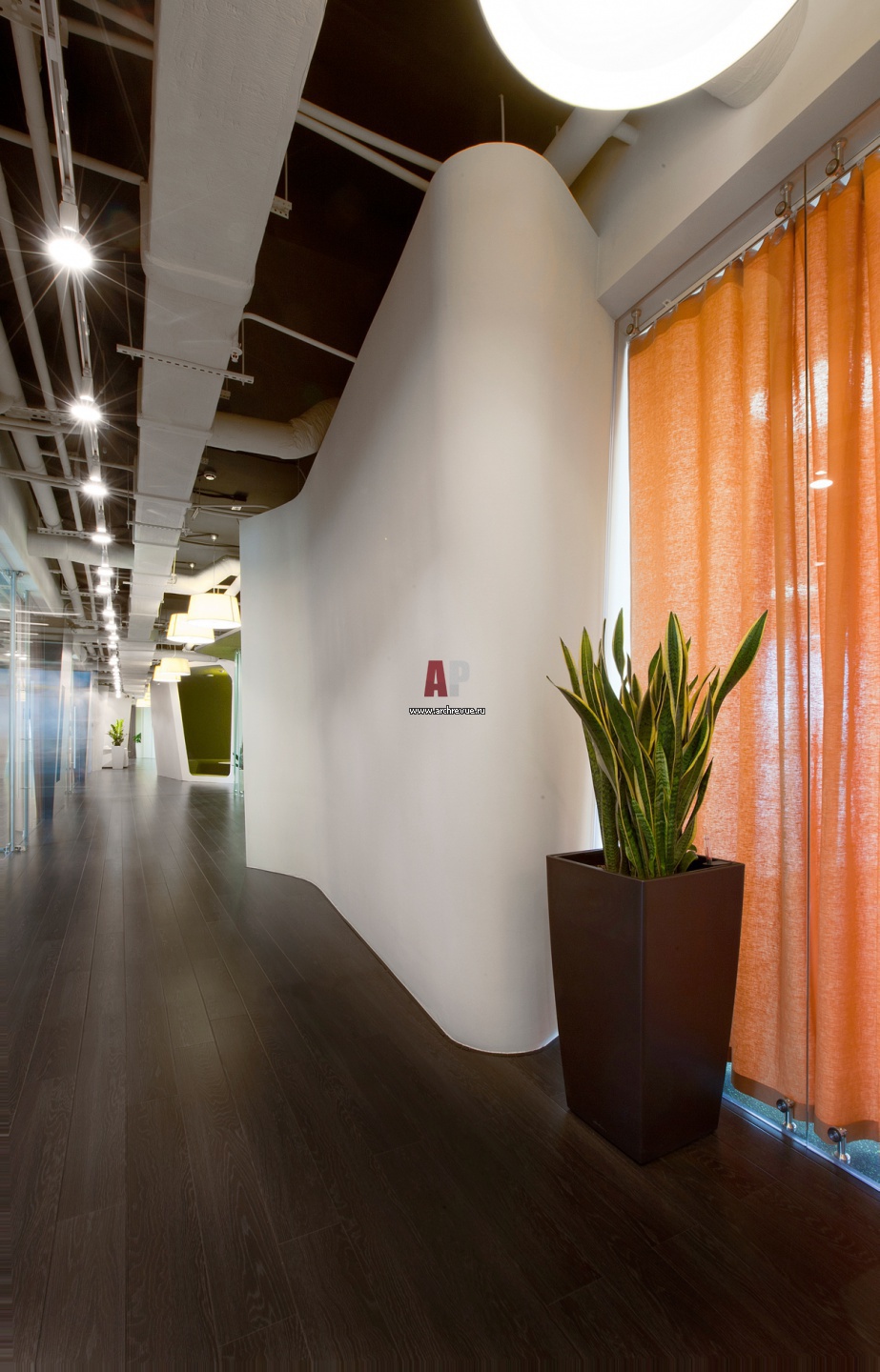 Фрагмент интерьера холла офиса. На полу – темная паркетная доска. Авторы проекта Петр Зайцев, Арсений Борисенко, архитектурное бюро za bor.