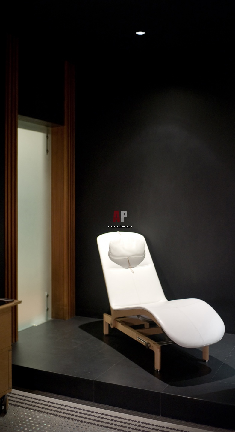 Фрамент интерьера зоны отдыха при бассейне в минимализме