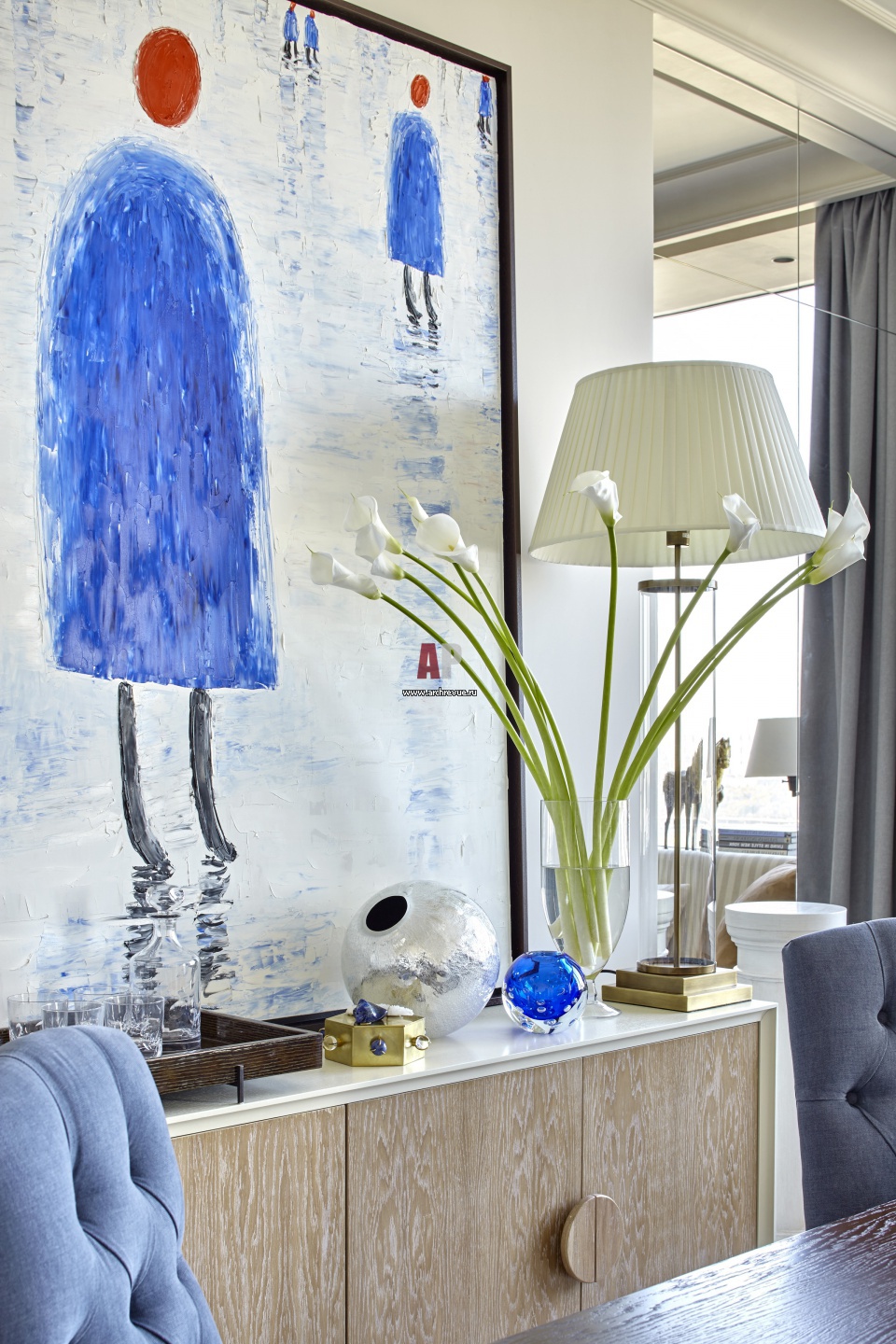 Картина работы Петра Бронфина идеально вписалась в цветовую карту интерьера.