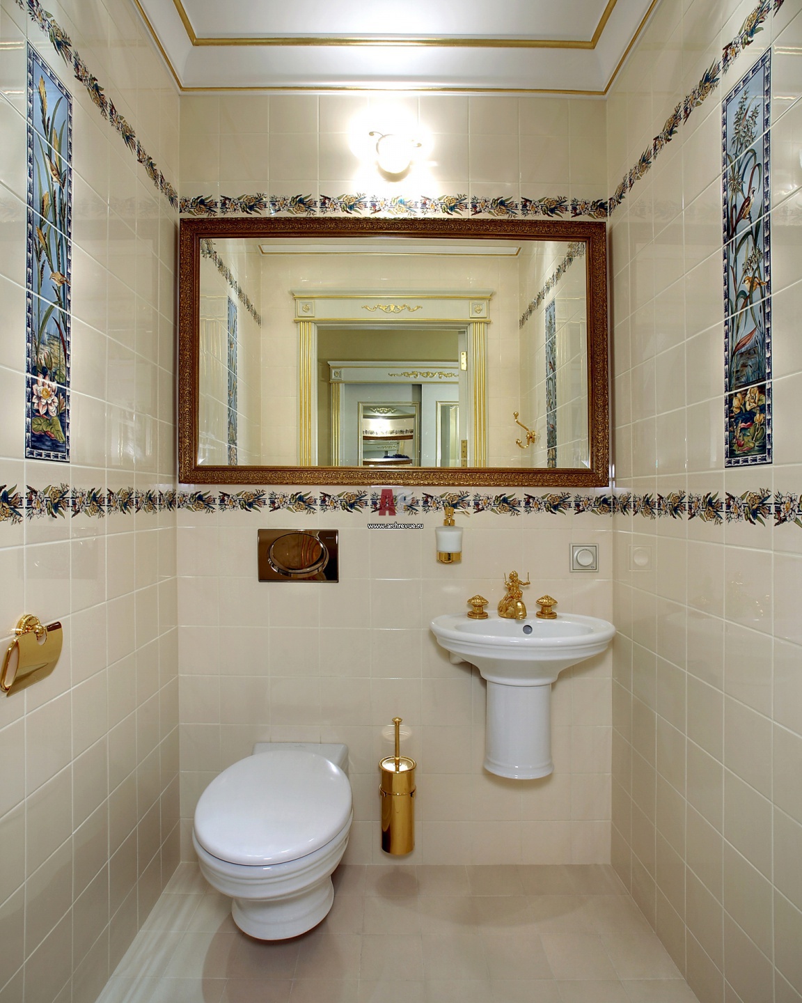 Гостевой санузел в английском стиле. Плитка с цветочным декором и панно, Original Style.