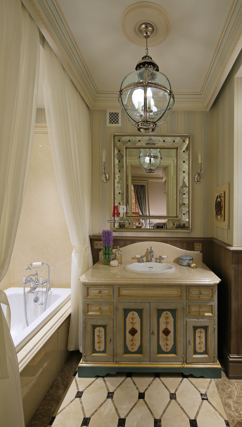 Интерьер детского санузла с мебелью, декорированной ручной росписью. Состаренное зеркало, OF Interni.