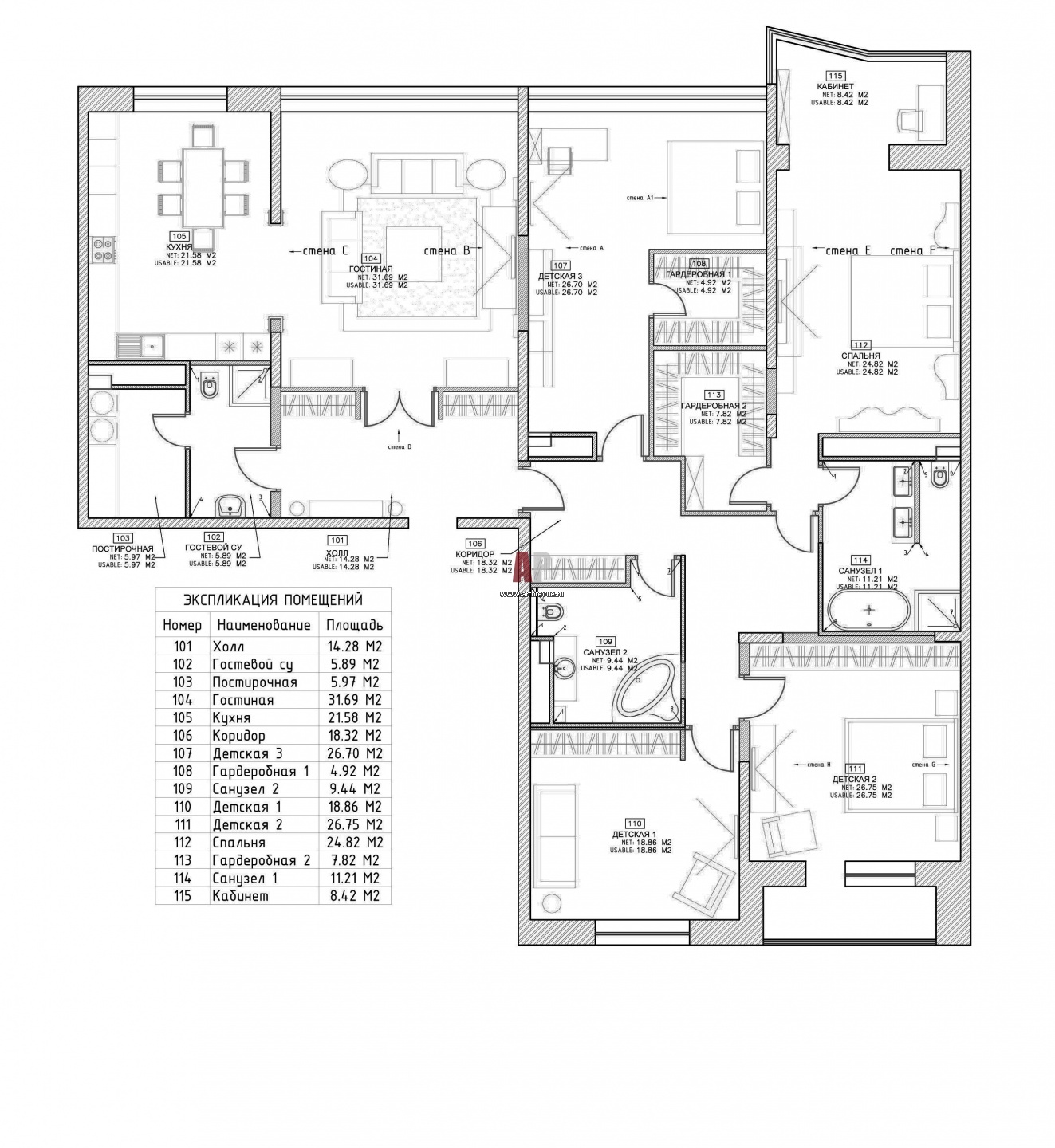 Планировка большой квартиры для бизнесмена.