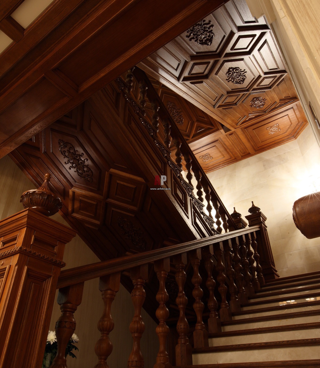 Лестница изготовлена из дерева по авторским эскизам компанией «Бесст».