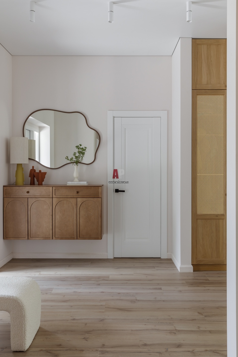 Современный дом в лесу. Светлый и воздушный интерьер входной группы.