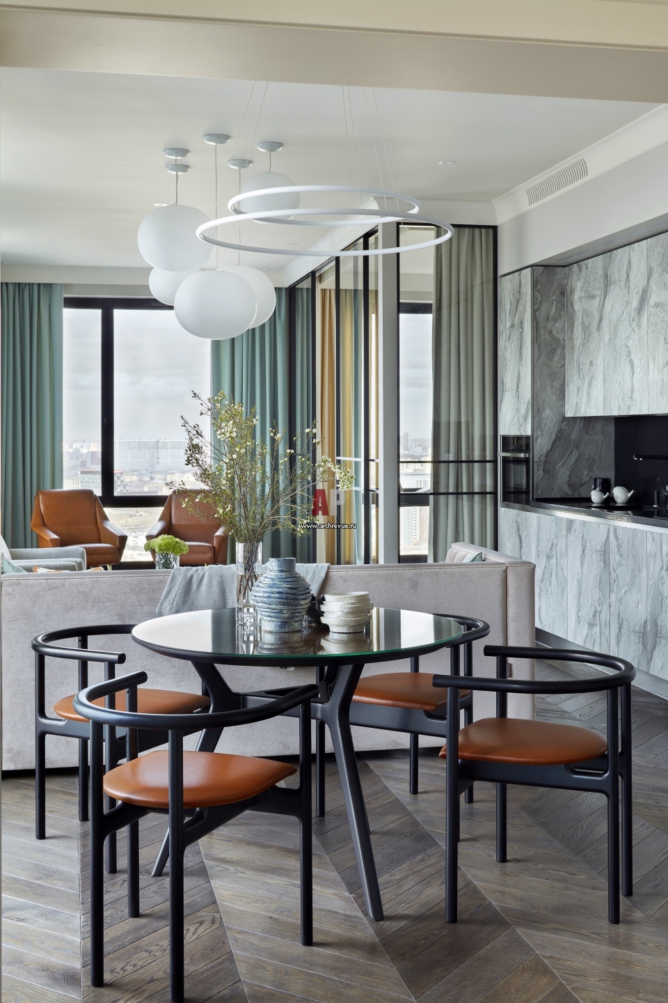 Интерьер на 42 этаже. Транзитная квартира для двоих в ЖК «Песня Сити»