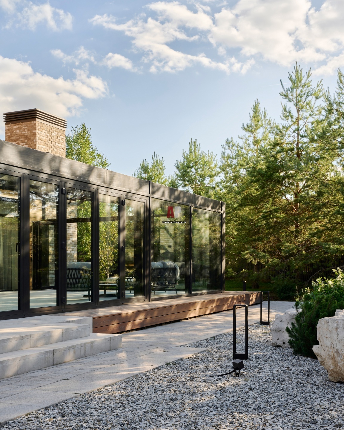 К дому дизайнеры пристроили всесезонную террасу с панорамным остеклением, ее площадь – 90 кв. м.