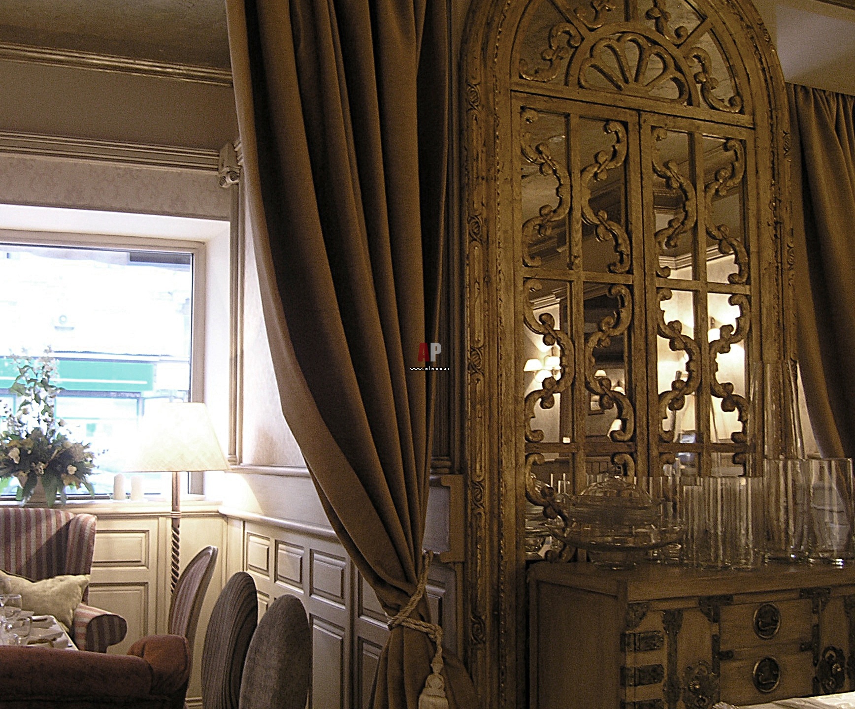 Патинированные зеркала, созданные по эскизам дизайнеров, производитель багетная мастерская «Квадрат», визуально усложняют пространство.