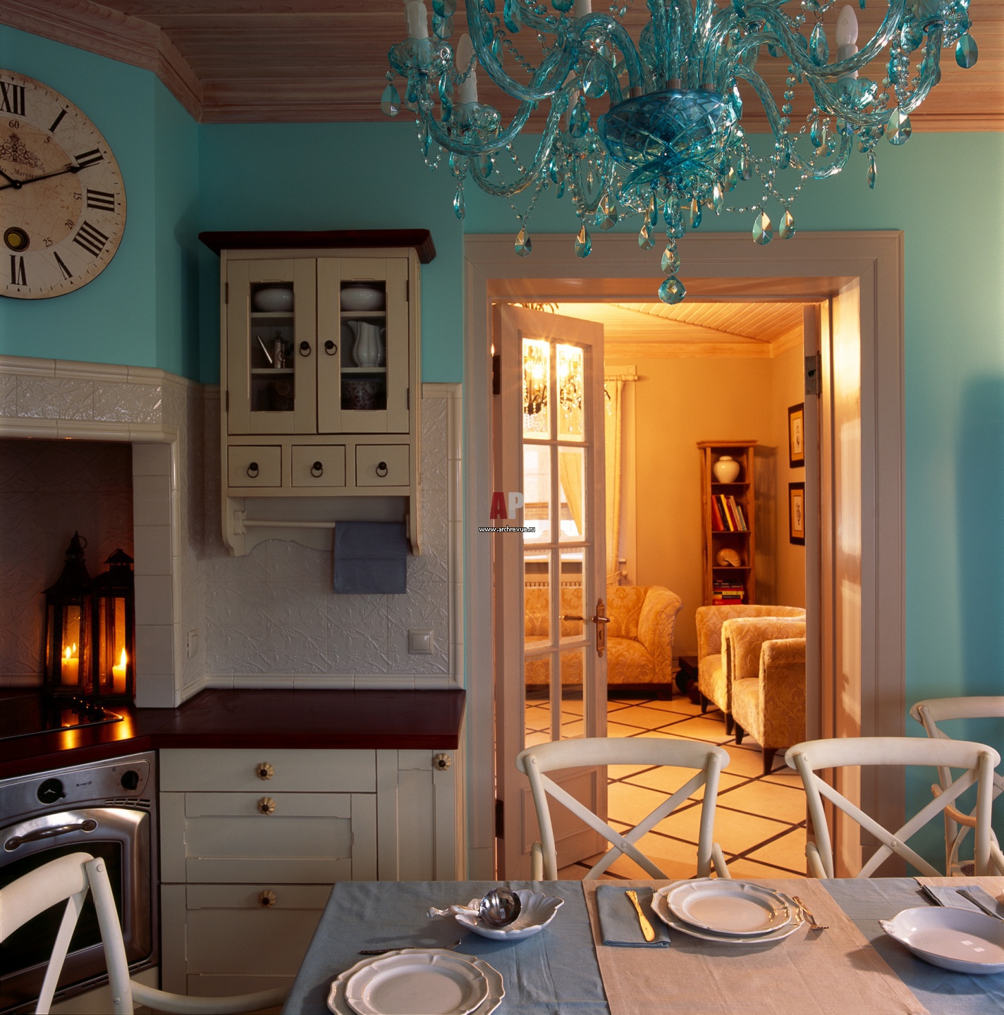 Фото интерьера кухни двухэтажного дома в стиле фьюжн