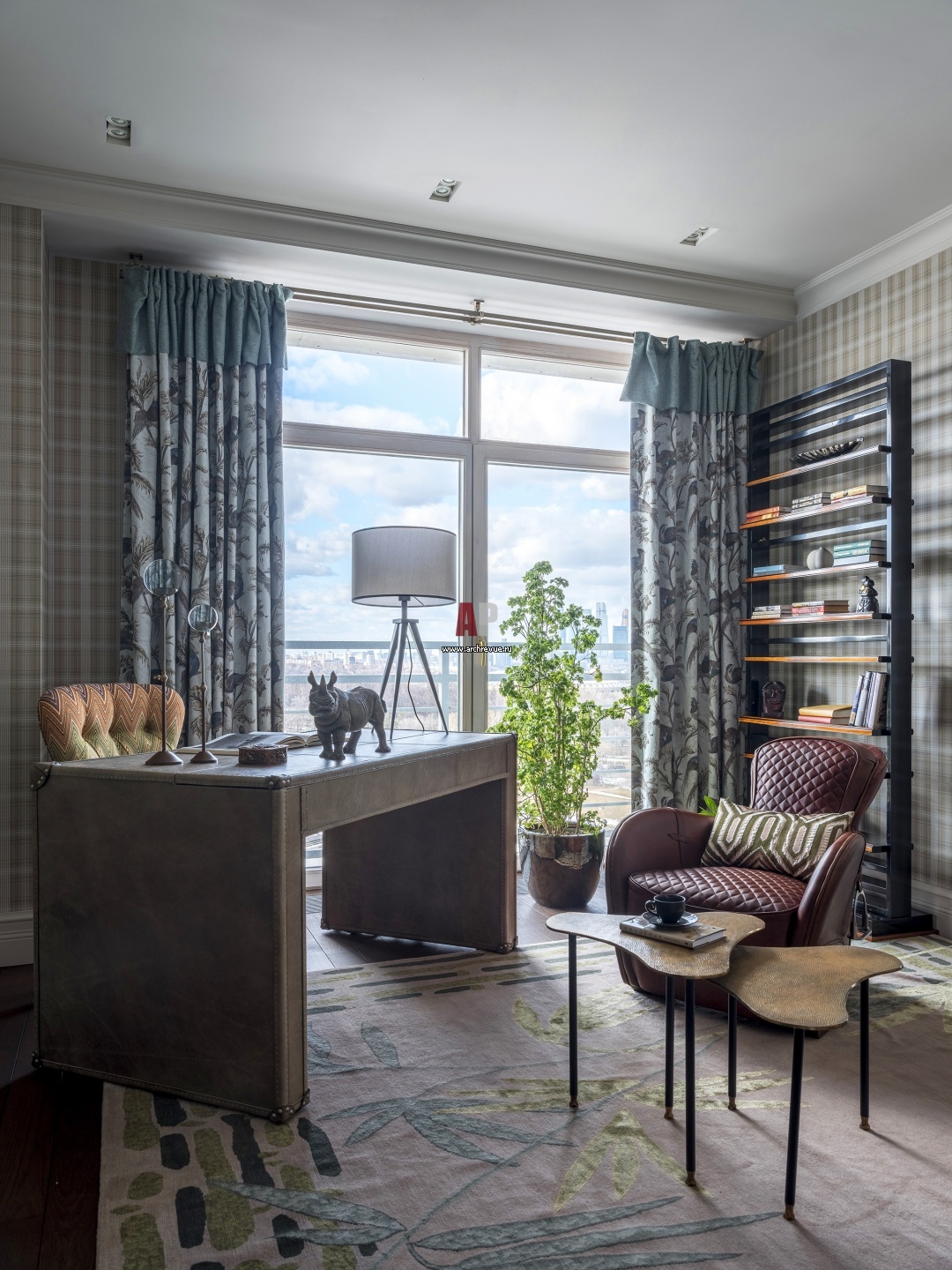 Рабочий кабинет с панорамным окном. Стеллаж, Miazzo Elite Italia.