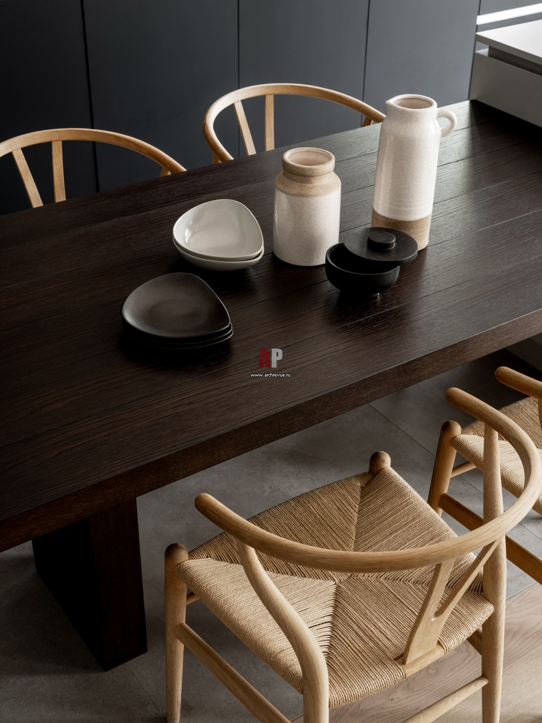 Минималистская квартира с бетоном и естественными фактурами. Интерьер столовой.