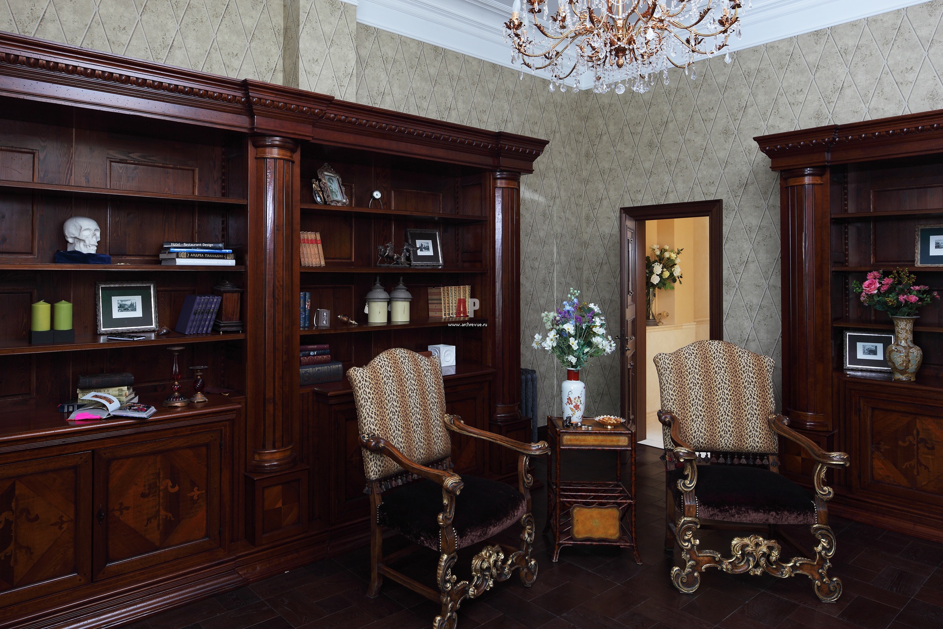 Фото интерьера библиотеки особняка в дворцовом стиле