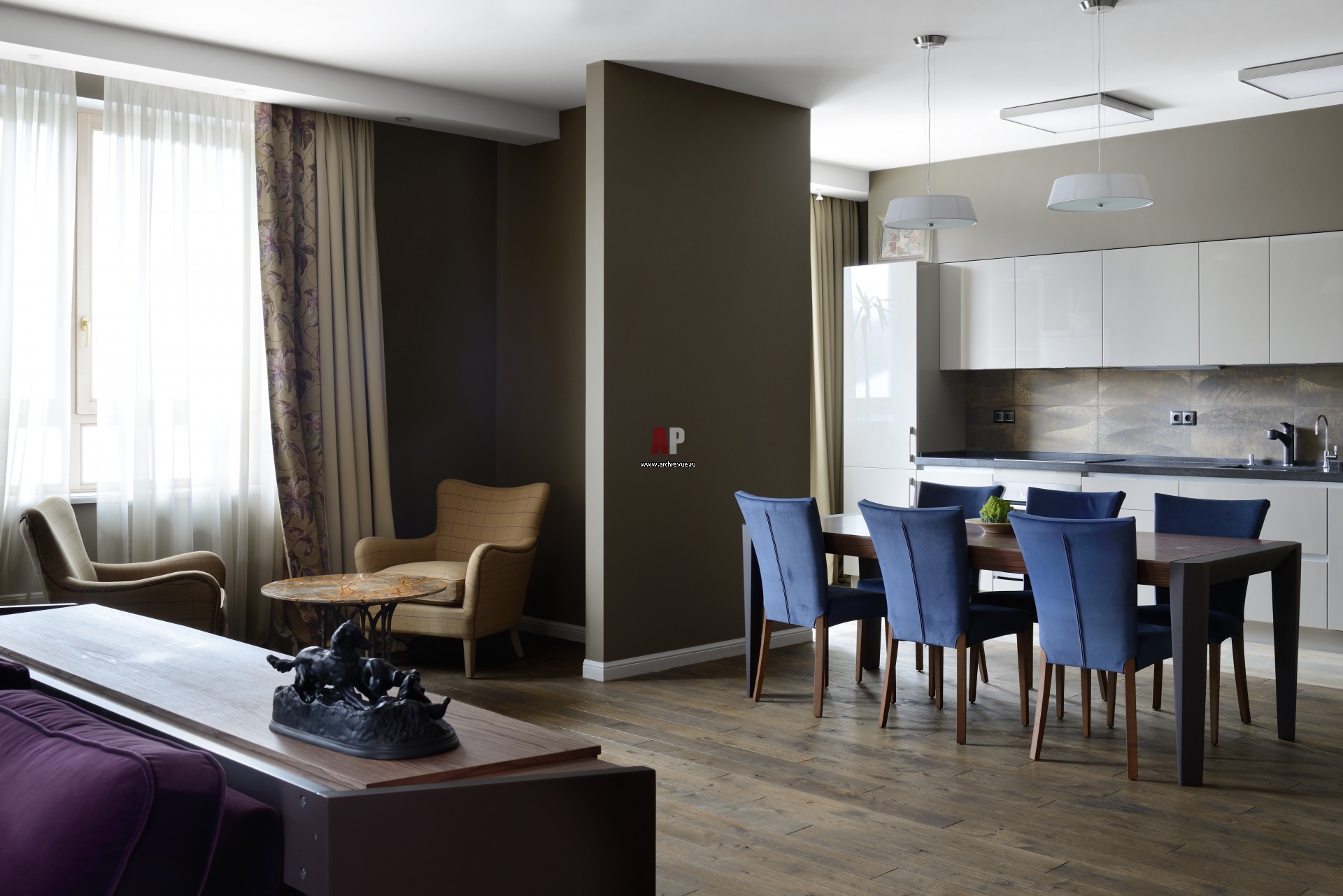 Общая гостиная занимает внушительную площадь и разделена на несколько функциональных зон: диванную с домашним кинотеатром, зону отдыха с окном (с двух сторон она выделена перегородками), обеденную группу и кухню. Доски для пола селекции «Рустик» были закуплены в России без финишного покрытия, они обработаны лишь маслом, которое не скрывает их красивую структуру.