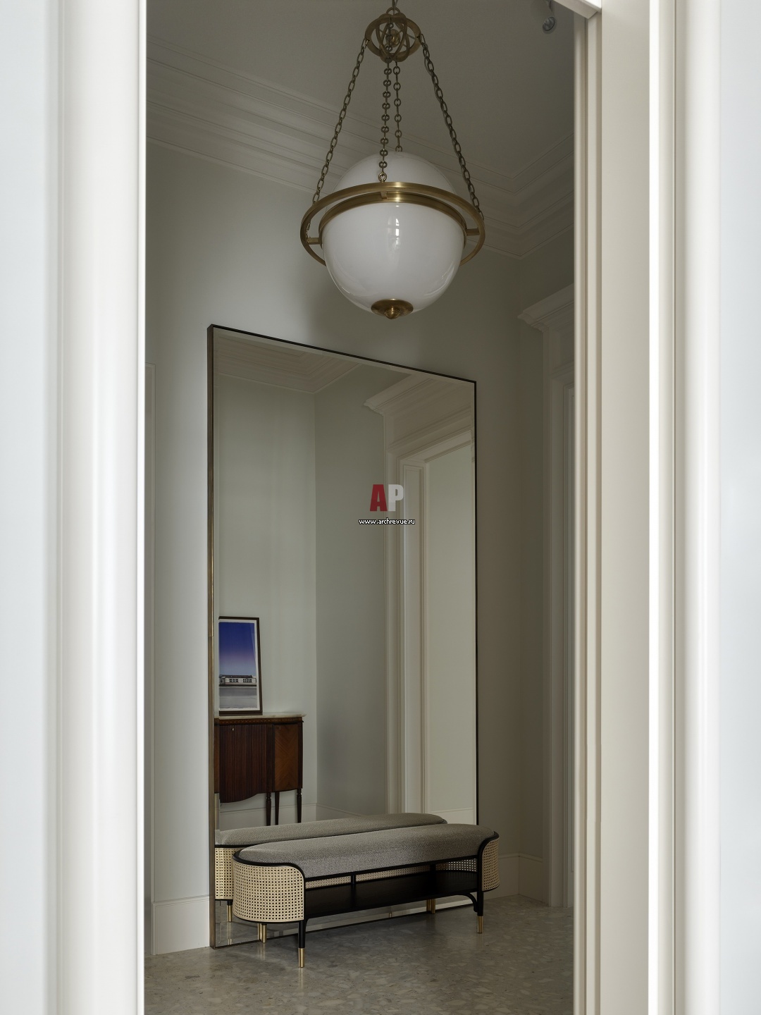 Эклектичная квартира в историческом доме в центре Москвы. Прихожая. Люстра, антиквариат.