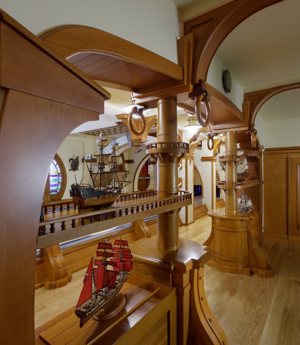 Цокольный этаж используется по максимуму. В цоколе расположены помещения, требующие минимального освещения: бильярдная, боулинг, винный погреб, домашний кинотеатра и технический блок.