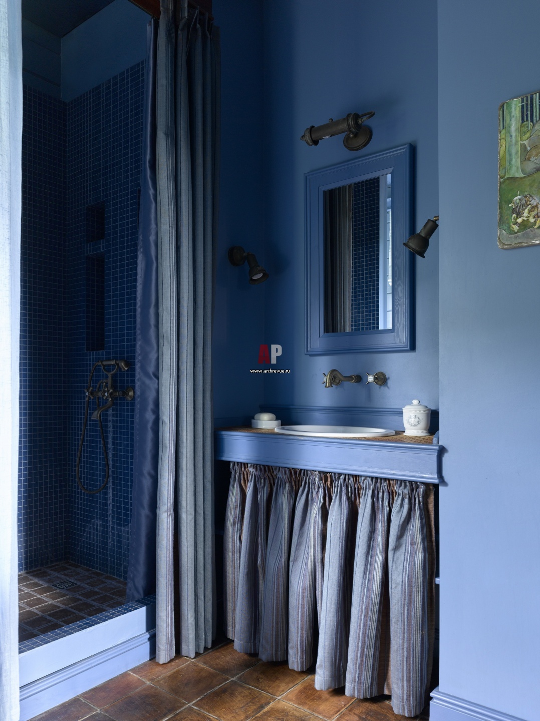 Фото интерьера санузла деревянного дома в стиле фьюжн