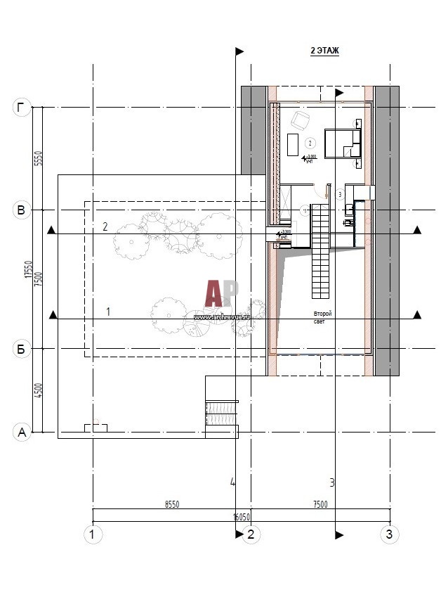 Планировка 2 этажа 2-х этажного дома с авторской архитектурой на Николиной Горе.