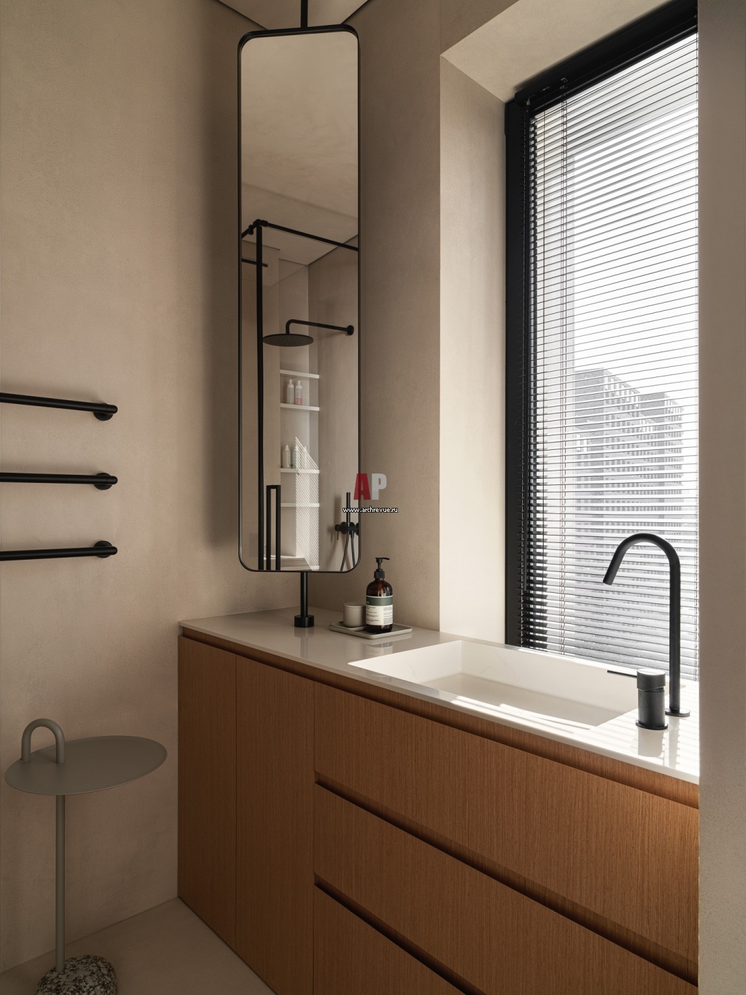 Интерьер 4-х комнатной квартиры с природными мотивами и видом на заповедную зону