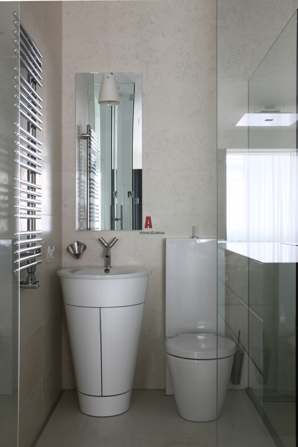 Интерьер ванной комнаты в современной молодежной квартире. Умывальник, Duravit.