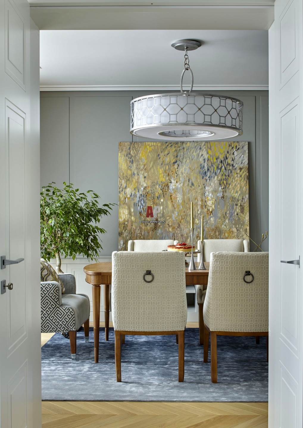 Квартира в стиле современного Манхеттена. Столовая группа с удобными креслами организована по тому же принципу, что и лаунж респектабельного ресторана.
