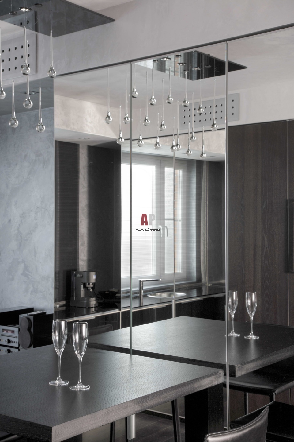 Интерьер кухни в серо-серебристых тонах.