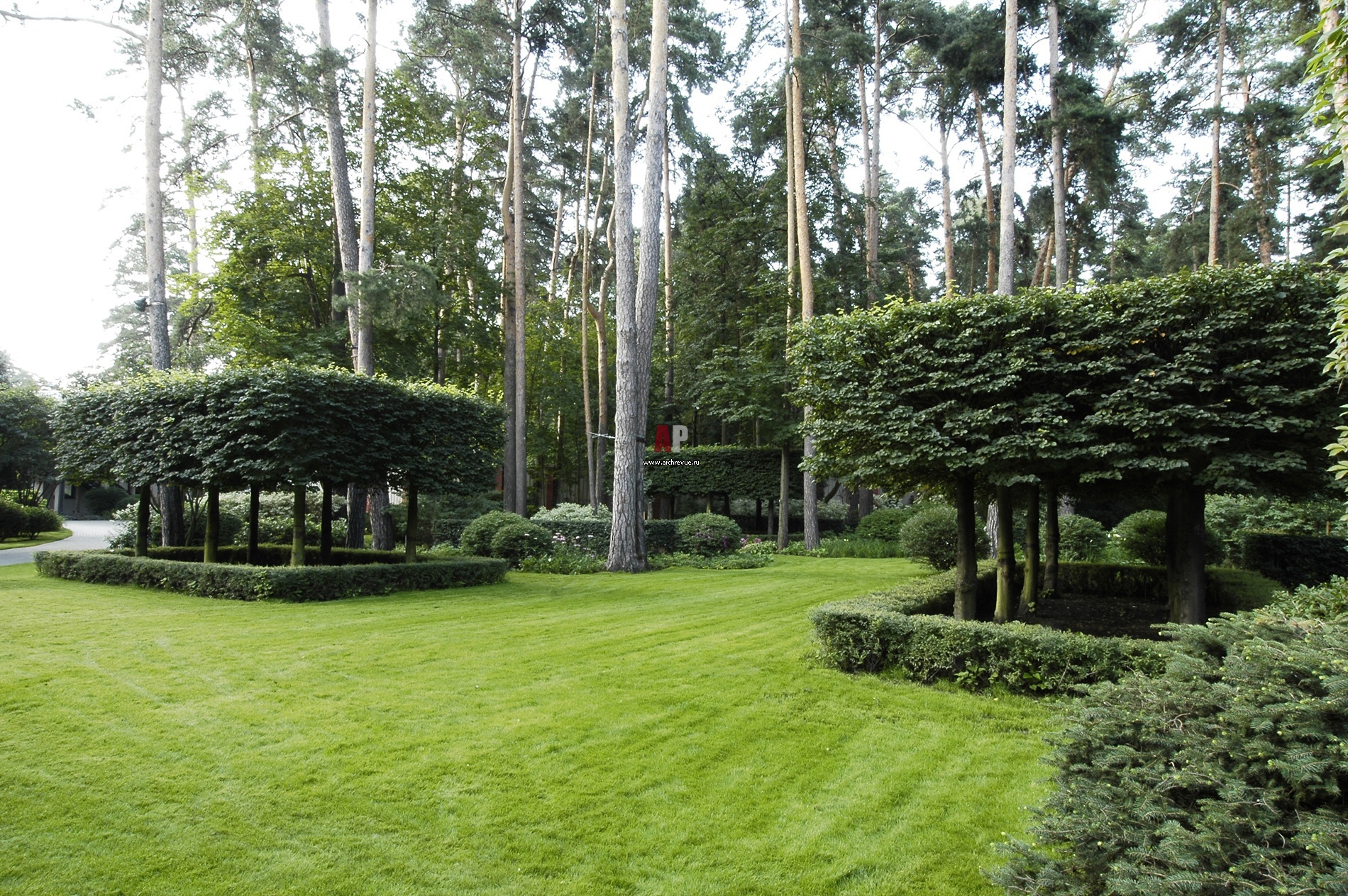 Фото ландшафта. К уже существующим соснам, на участке высажены ели, пихты и можжевельники.