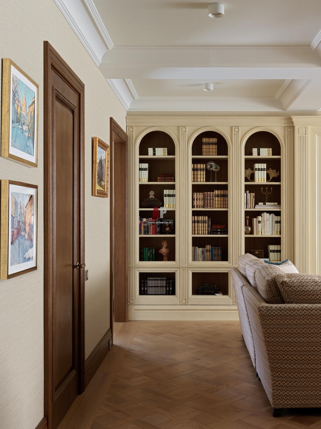 Площадь общей зоны составляет около 60 кв. м, она включает гостиную, столовую и кухню. Дверная фурнитура, Salice Paolo, поставщик EMPORIO.ru.