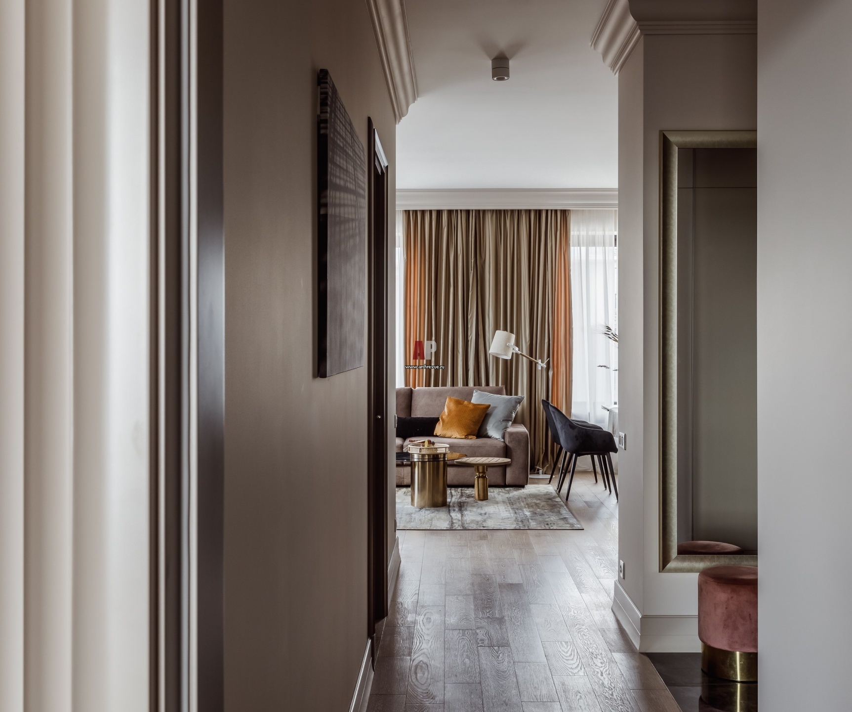 Квартира с большой террасой и природным интерьером. Интерьер прихожей.