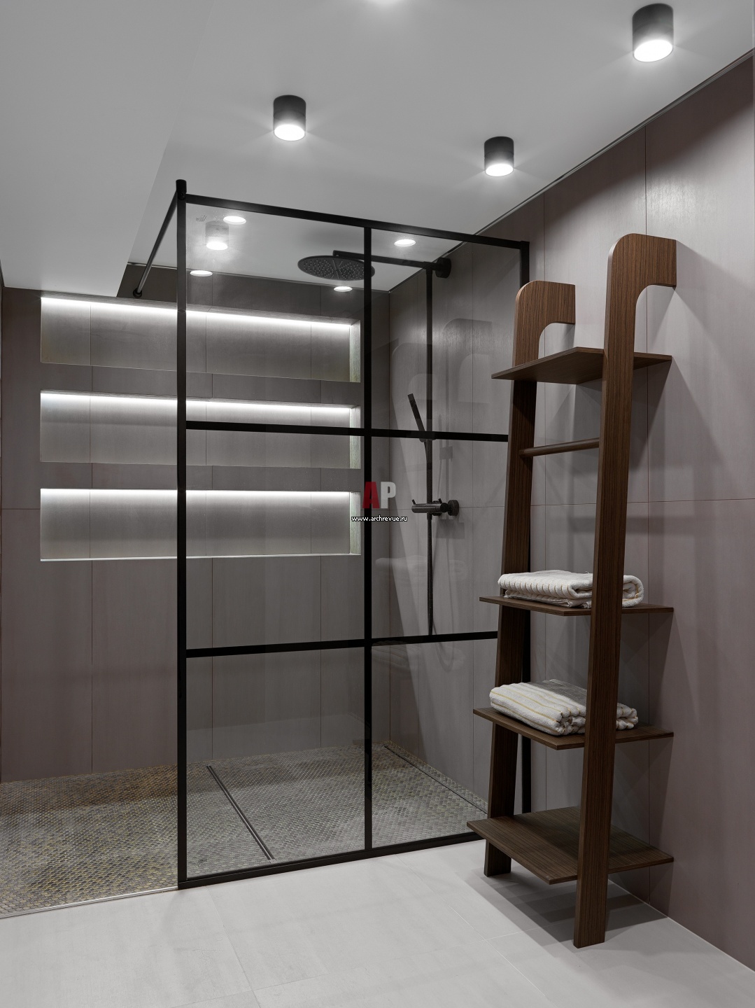 Рядом с кинозалом находится сауна, душевая и санузел. Керамогранит, Atlas Concorde.