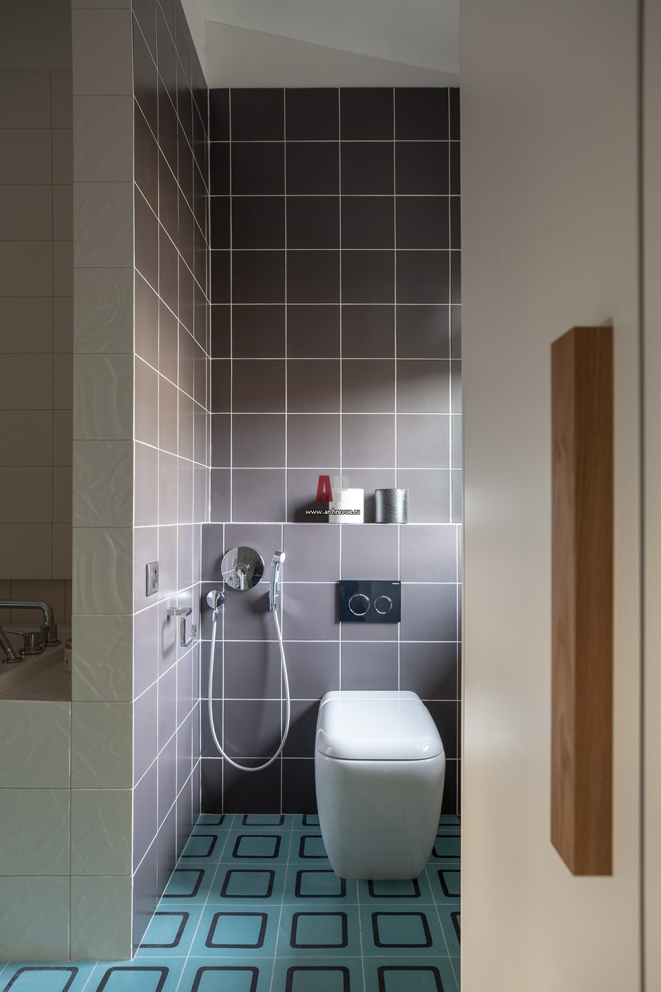 Фото интерьера санузла деревянного дома в стиле фьюжн