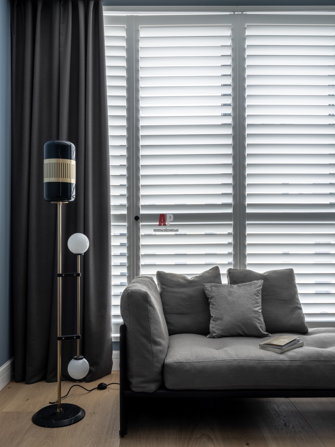 Зона отдыха с кушеткой в спальне находится на месте присоединенного балкона. Границы помещений обозначены понижение потолка.