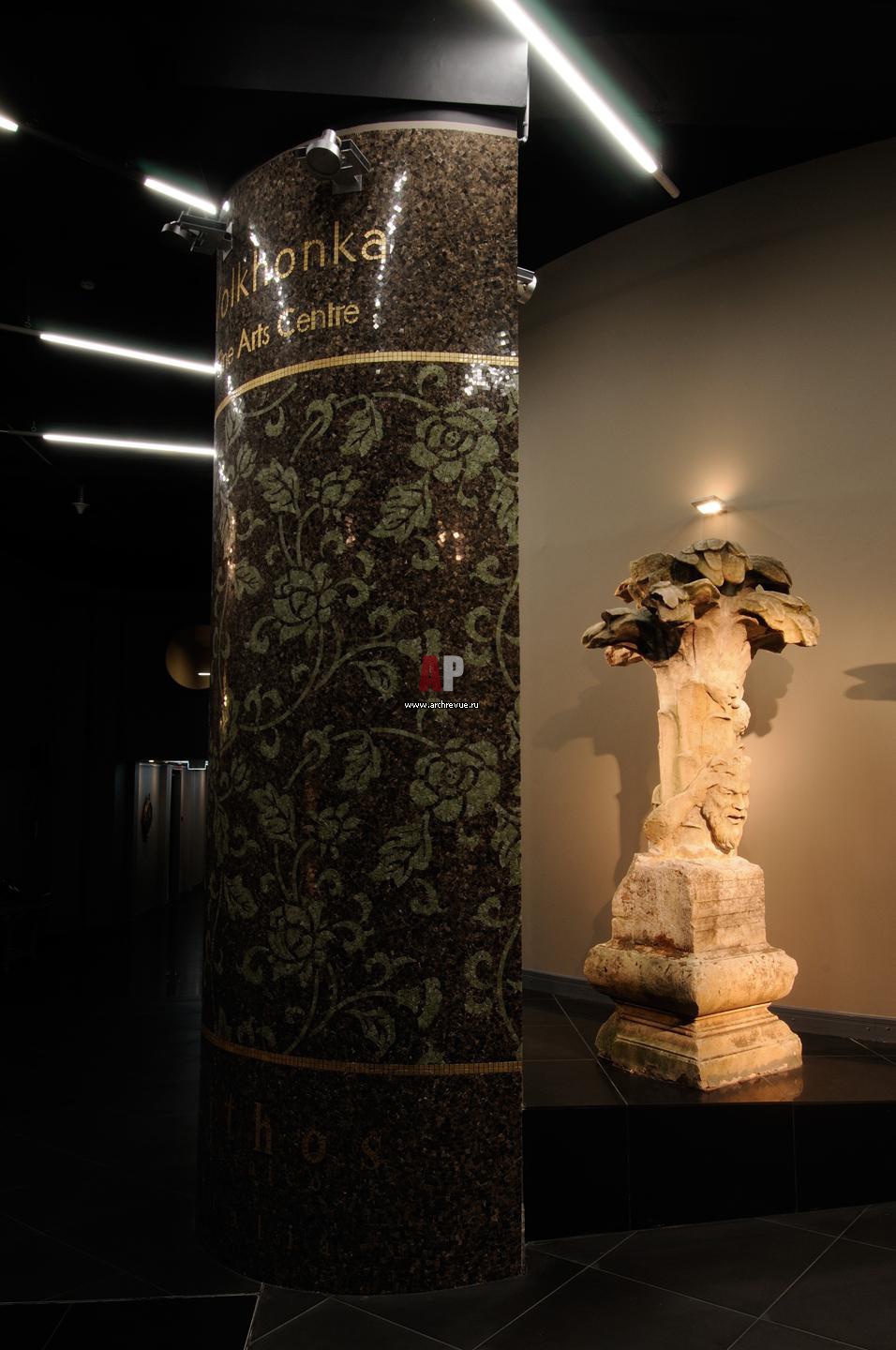 Яркий визуальный акцент входной зоны – колонна, выложенная мозаикой Lithos Mosaico.