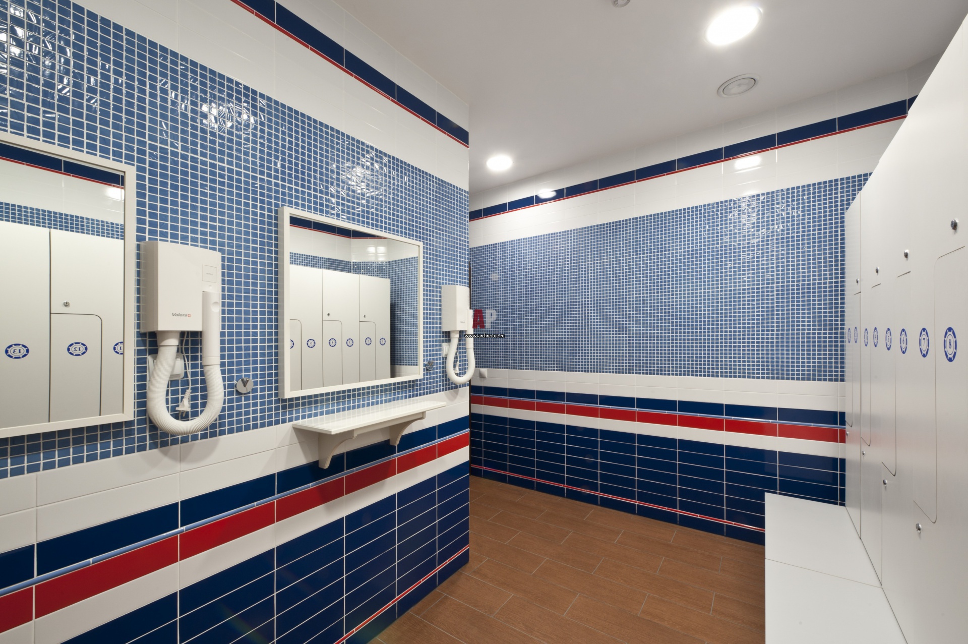 Фото интерьера мужской раздевалки в загородном спортивном комплексе.