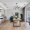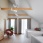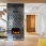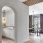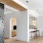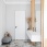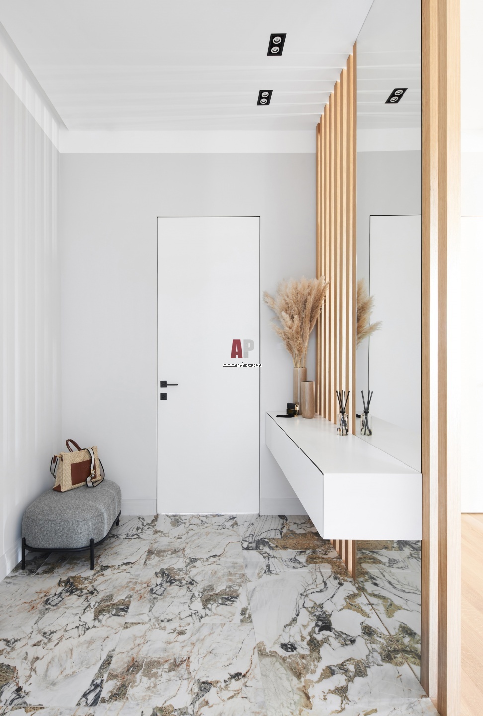 Прихожая оформлена в светлой палитре. Контрастная деталь – скрытый дверной короб графитового цвета подчеркивает геометрию. Белая консоль выполнена на заказ. Керамогранит, Rex.