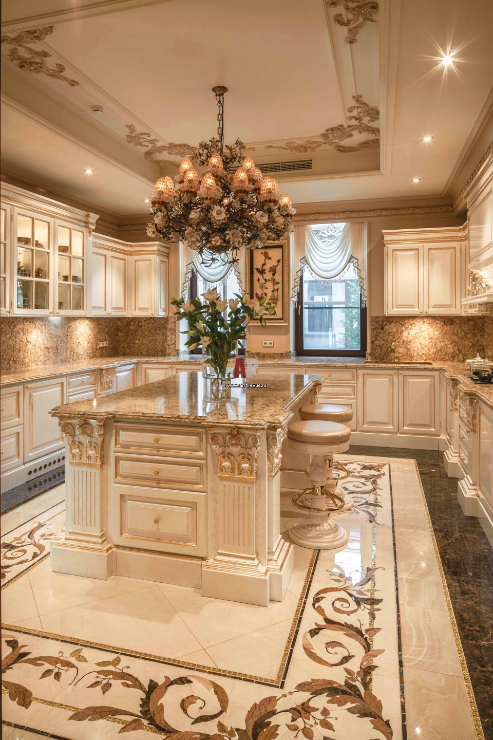 Фото интерьера кухни дома в дворцовой классике