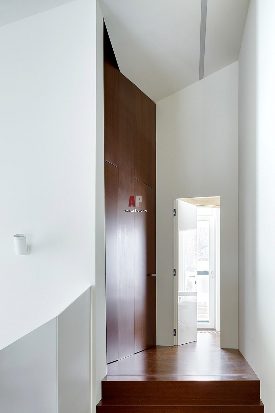 Дом расположен на сложном ландшафте, поэтому в интерьере перепады уровней и высот.