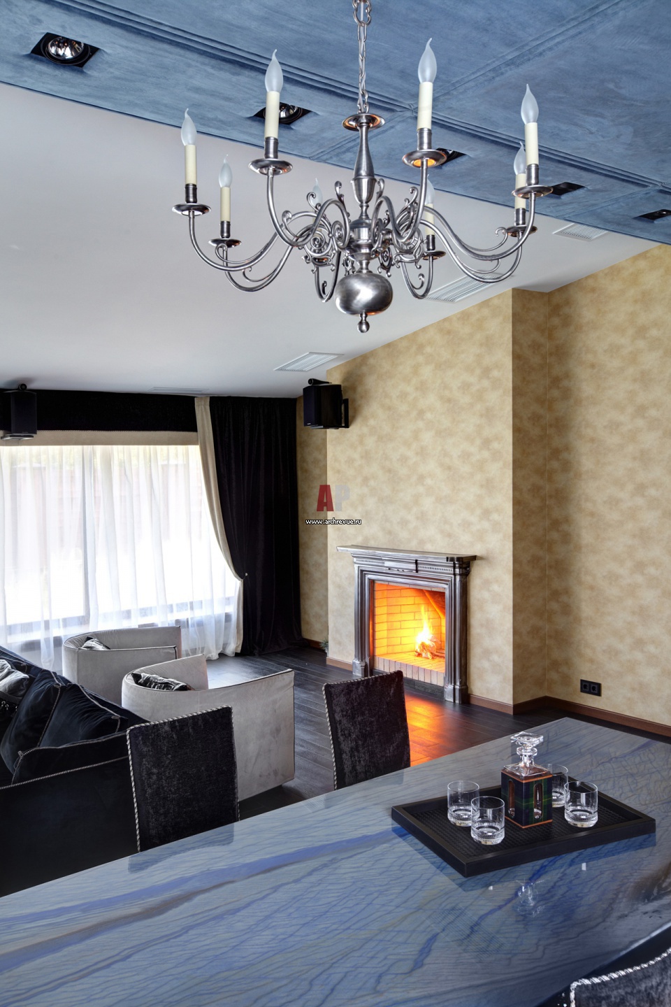 Вид со стороны столовой на гостиную. Камин из чугуна Stovax , поставщик «Интерьерный салон» («Loki камины»).