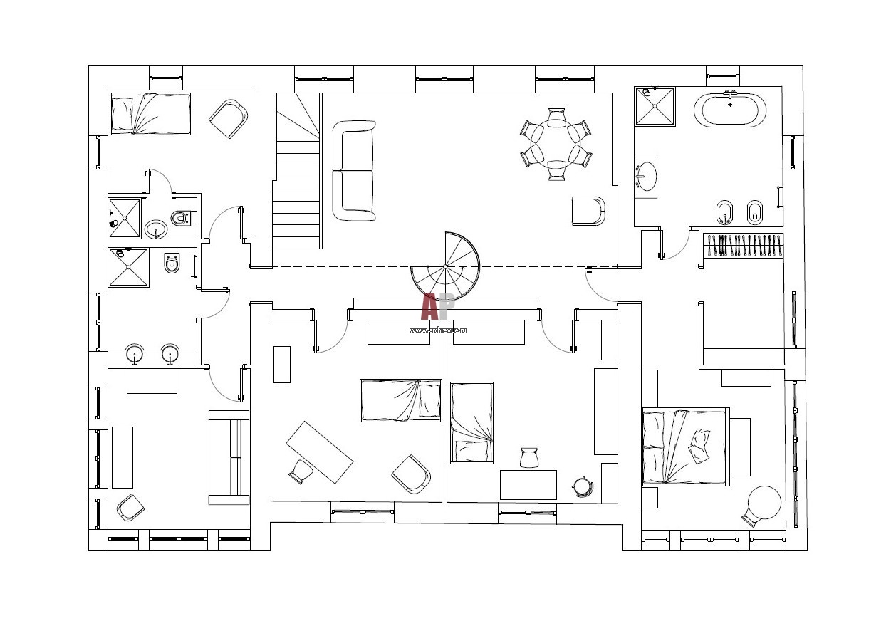 Планировка 2 этажа 3-х этажного коттеджа в Снегирях.