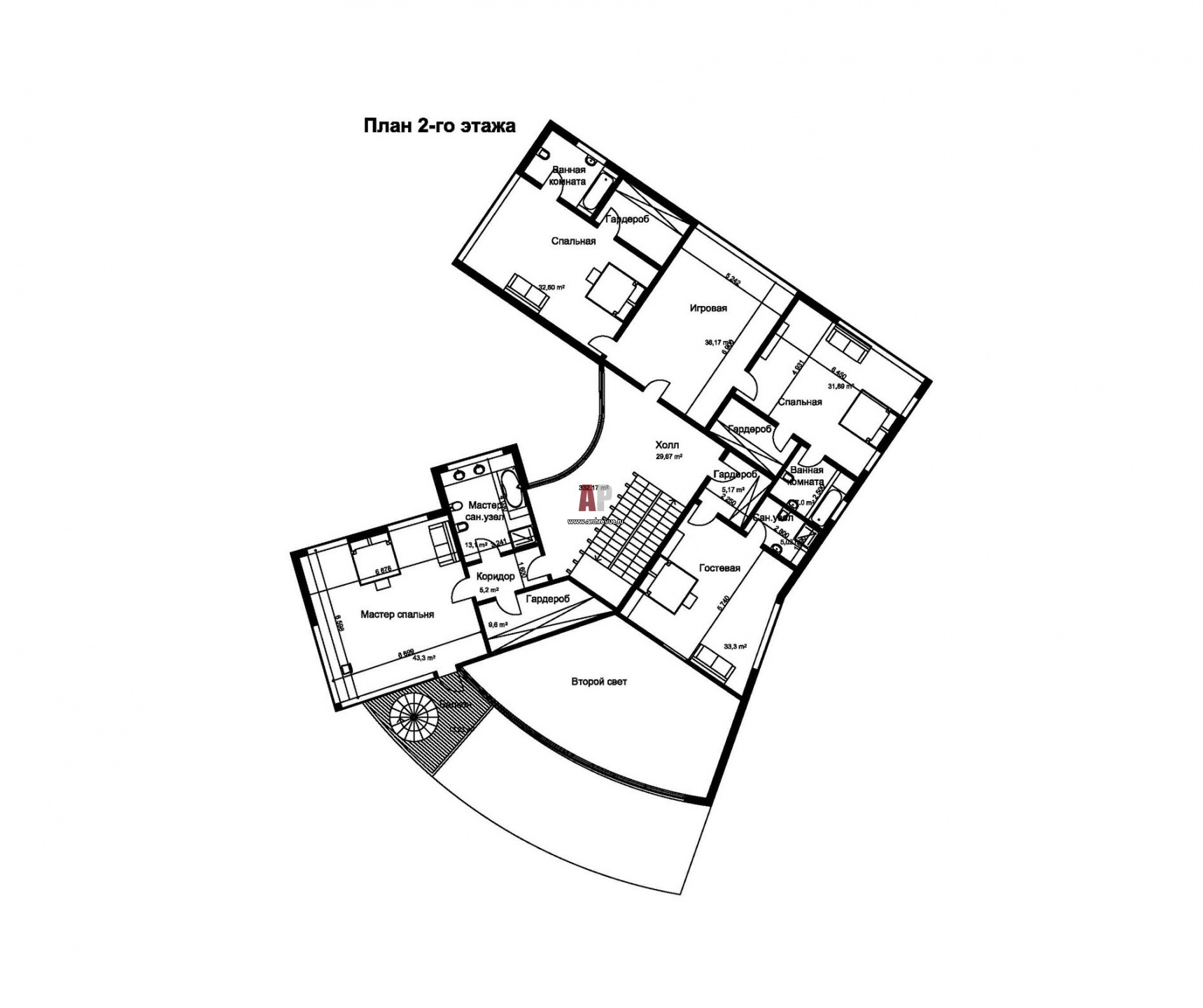 Дом Веер. Планировка второго этажа. Общая площадь - 1256,7 кв. м.