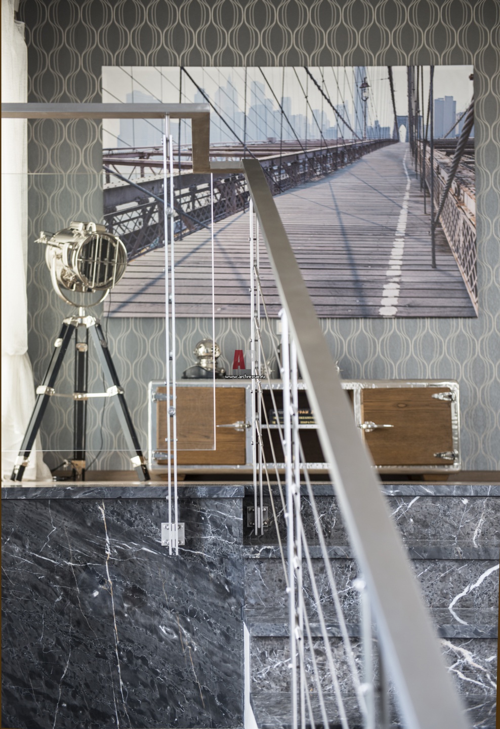 Фото лестницы с металлическим ограждением и каменными ступенями в загородном доме.