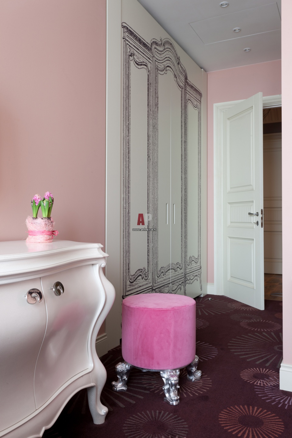 Фрагмент детской девочки. Интерьер с элементами барокко. Встроенный шкаф сделан на заказ, производитель «А-Дизайн».