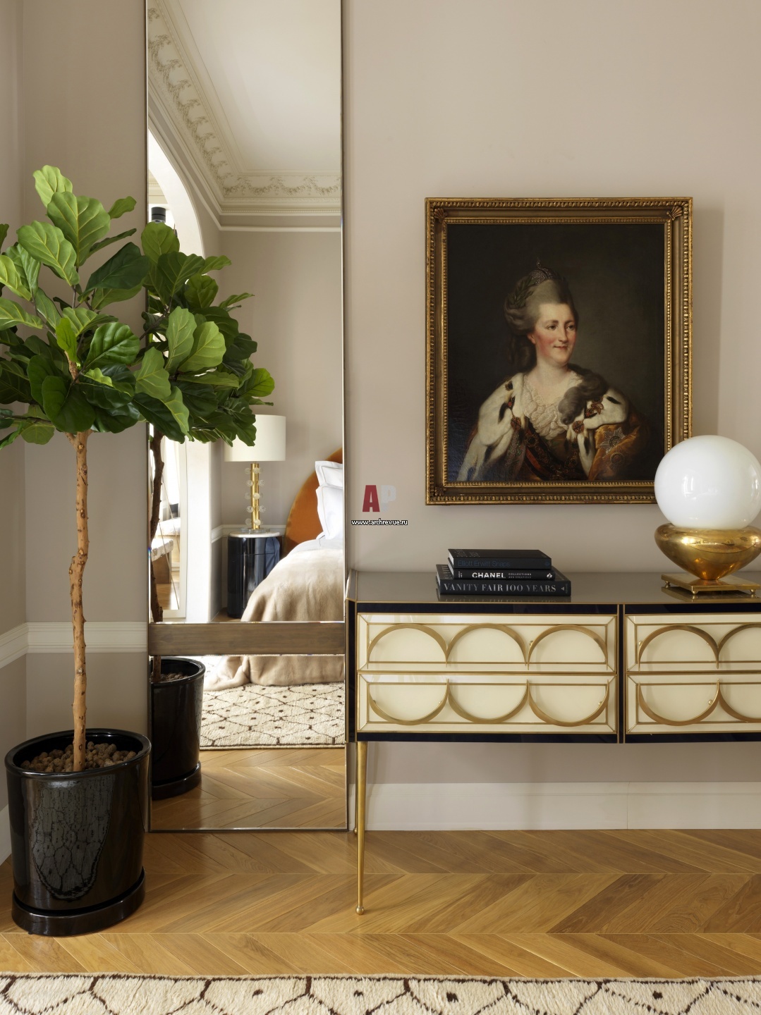 Интерьер спальни. Над украшенным латунью винтажным комодом – портрет Екатерины II работы неизвестного художника. Фигура российской императрицы для хозяйки знаковая: именно в ее честь был назван семейный бизнес.