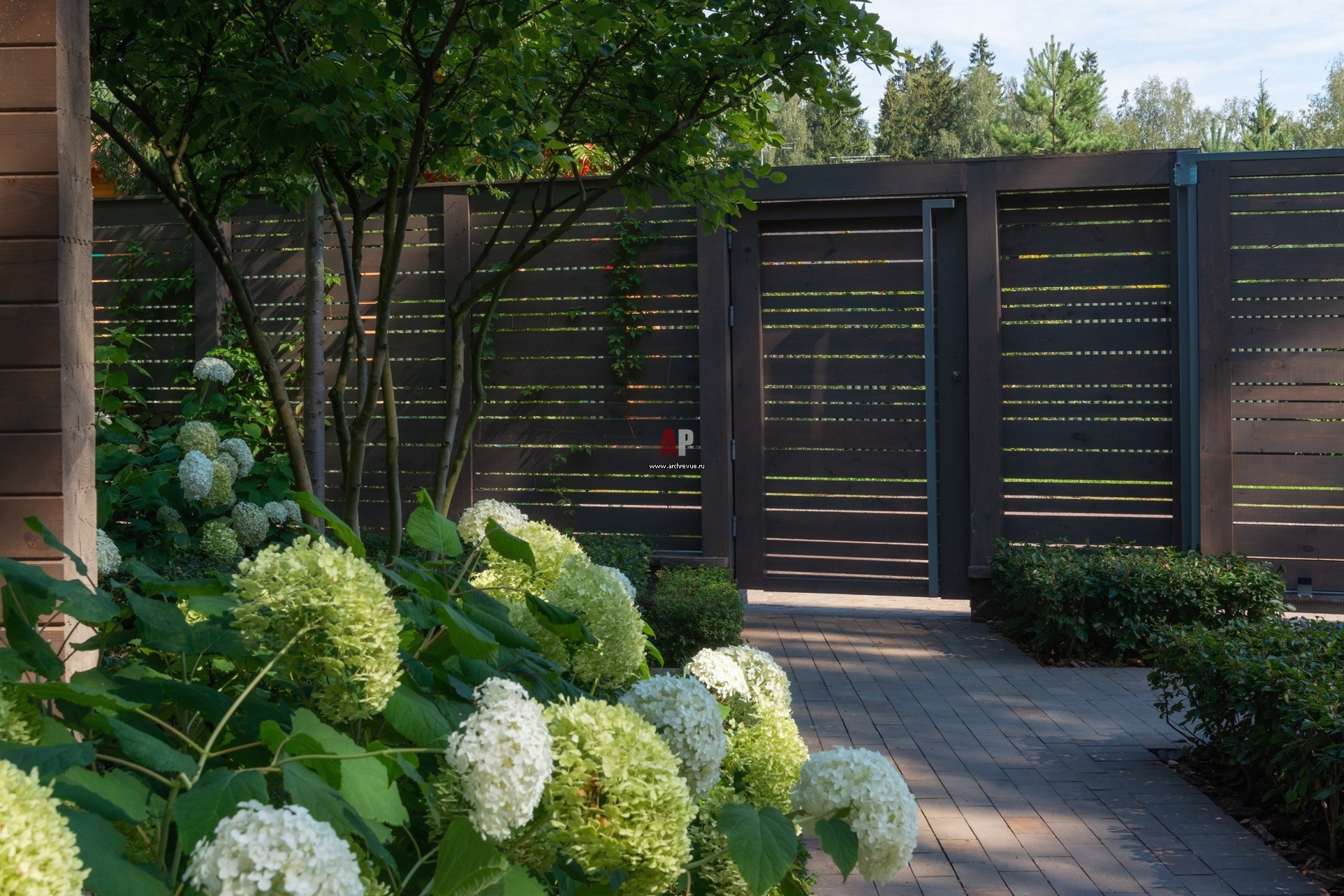 Еще одна эксклюзивная работа – ручка калитки, изготовленная по индивидуальным чертежам. Она сделана на всю высоту двери из металла и смонтирована с помощью скрытых креплений.