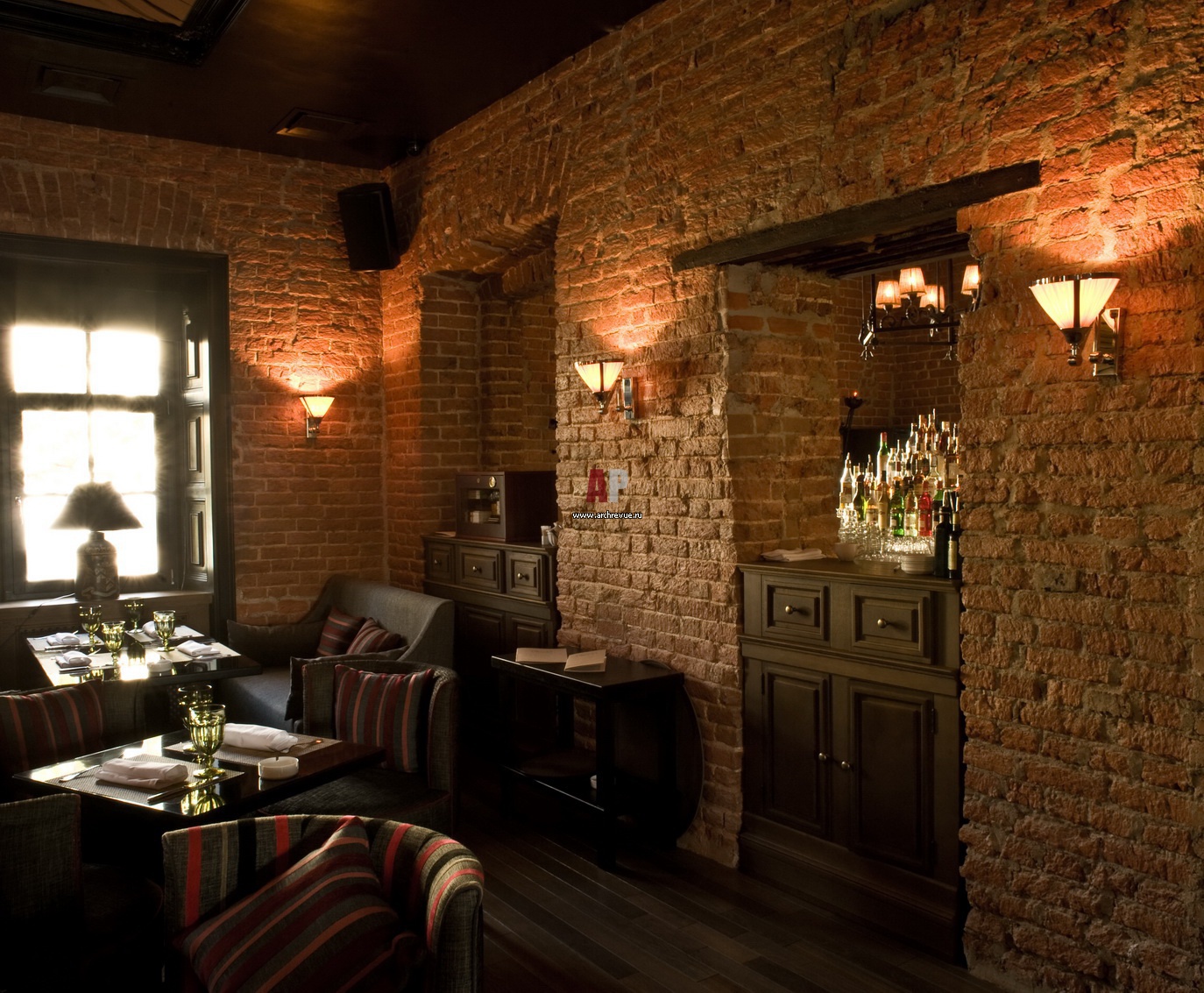 Перегородка из кирпича – дань историческому прошлому дома. Архитекторы лишь покрыли ее специальными составами, препятствующими осыпанию пыли. Вся мебель имеет уникальный дизайн и создана по эскизам авторов проекта мастерами компании Beni.