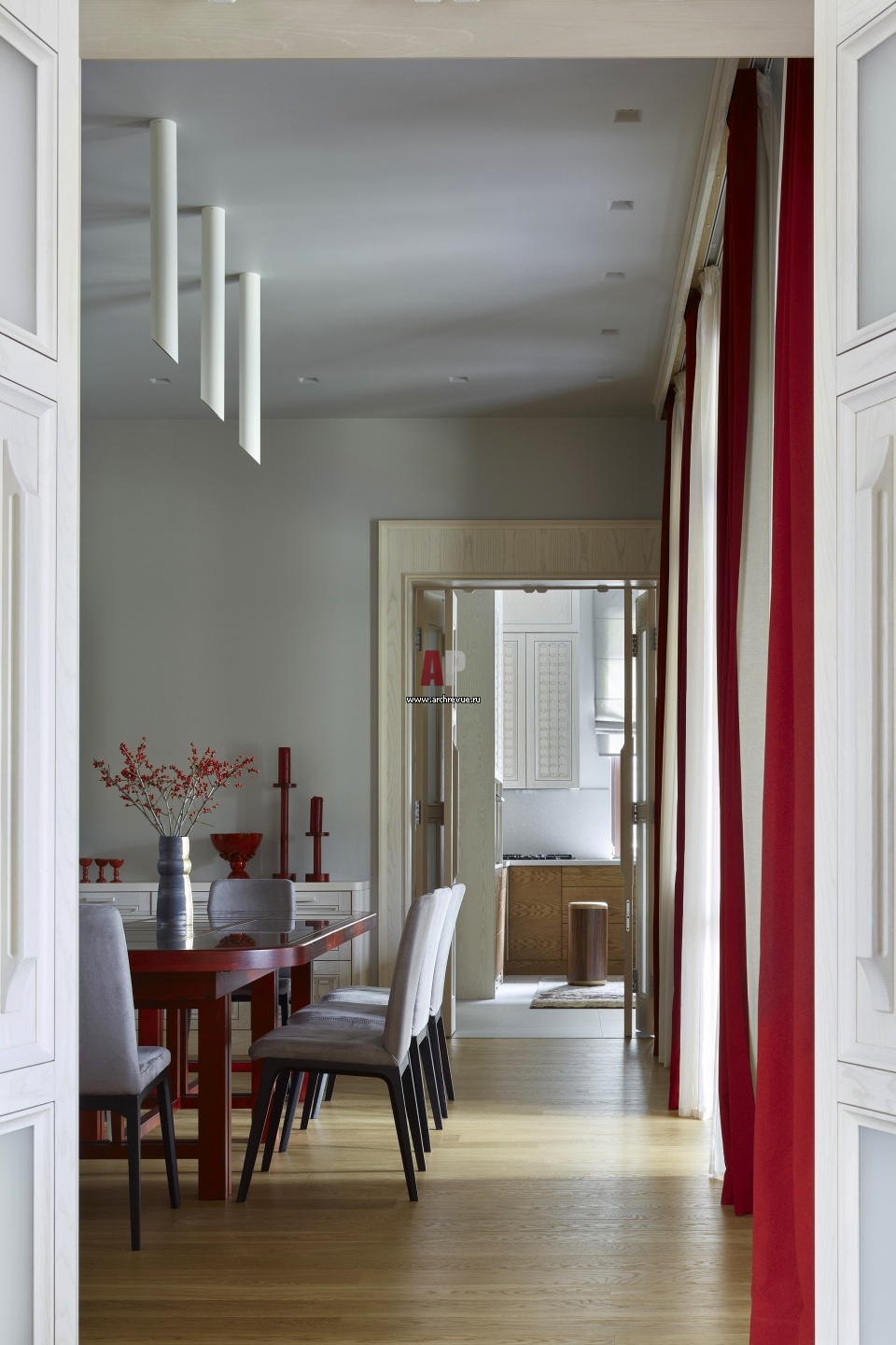 Анфилада с видом на столовую. Удлиненные цилиндрические светильники Nail, Centrsvet.